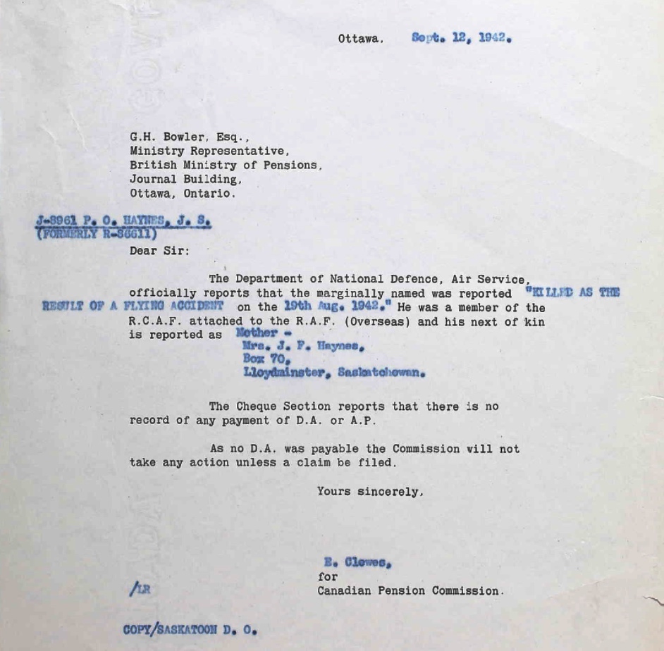 Digital gallery of Pilot Officer John Stewart Haynes
