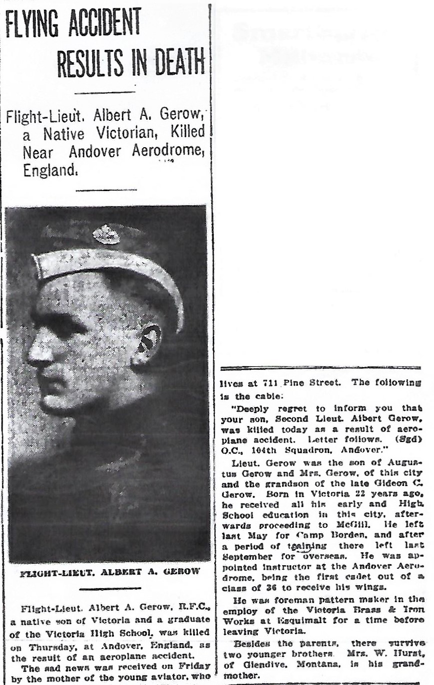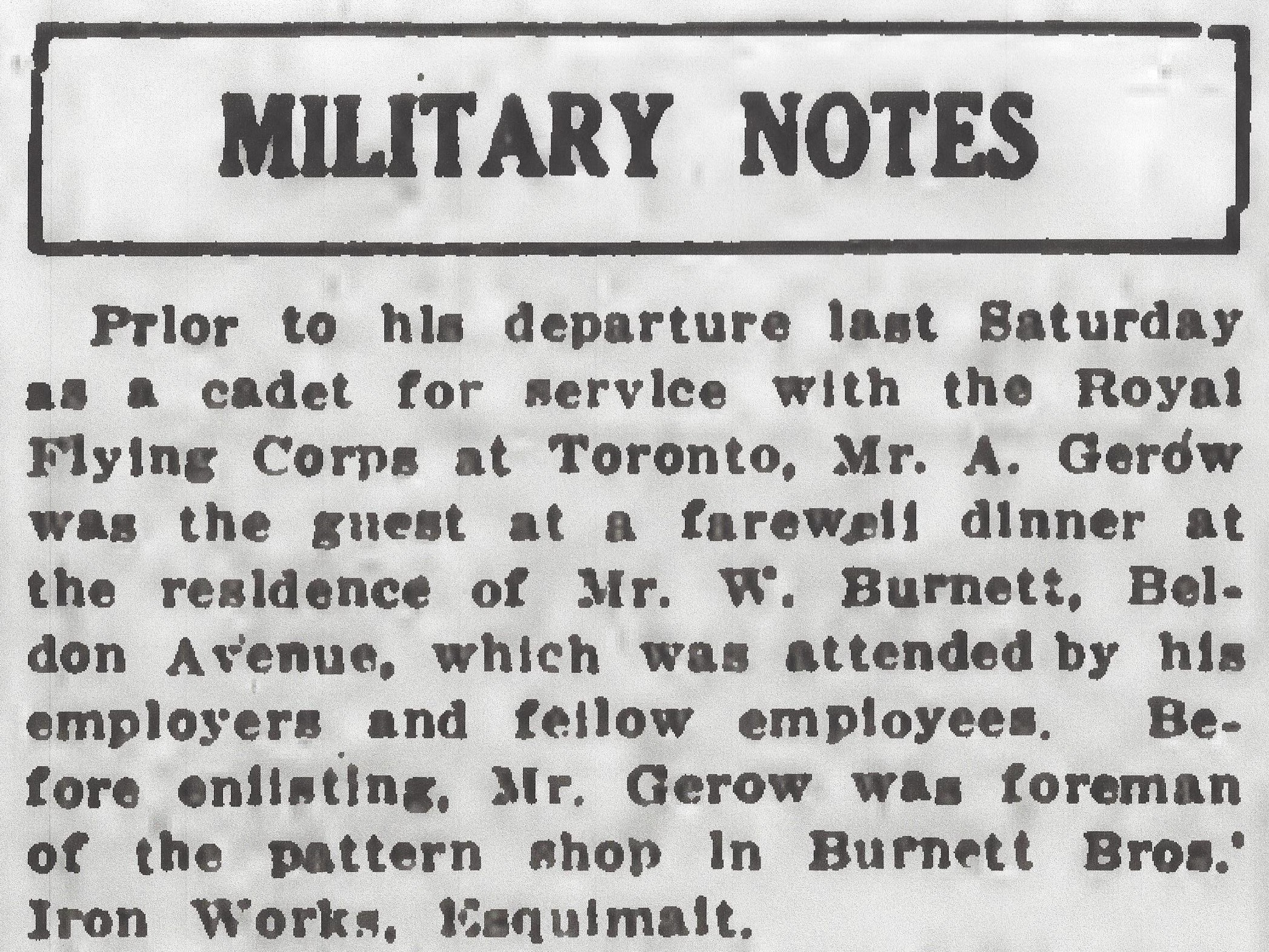 Son of Augustus and Elizabeth Gerow, of Victoria West, British Columbia.