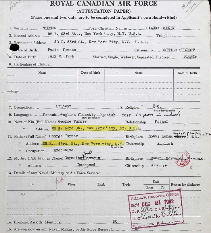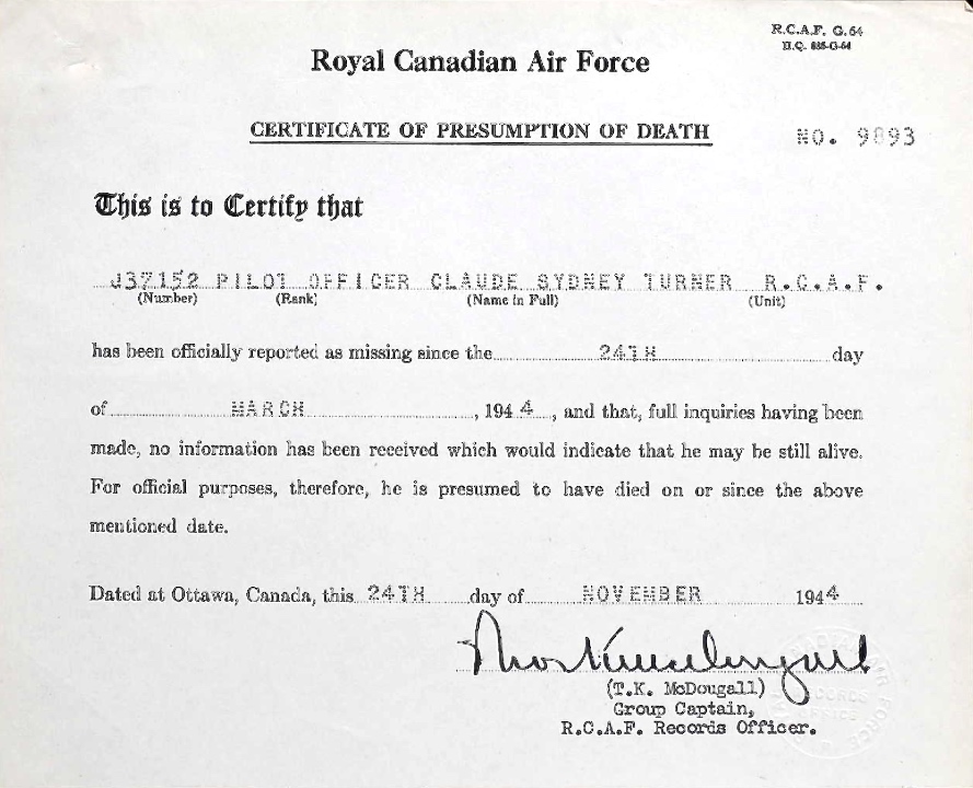 Digital gallery of Pilot Officer Claude Sydney Turner