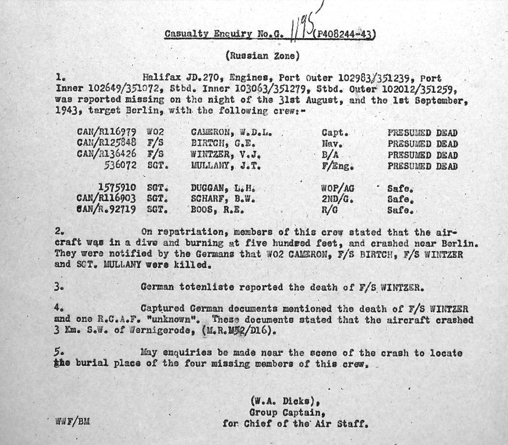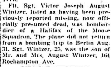 Flight Sergeant Victor Joseph August Wintzer
