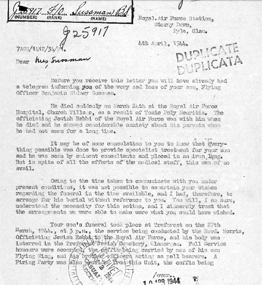Digital gallery of Flying Officer Benjamin Sidney Sussman