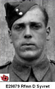 Son of Alfred Syvret and Rachel Misson, of Belle Anse, Québec. His brother, Private Charles Syvret, served in Europe during the Second World War, and he survived the war.