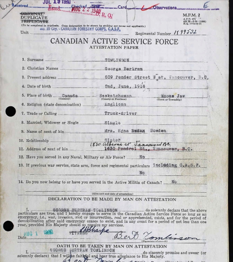 Digital gallery of Private George Bertram Tomlinson