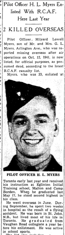Son of G. Lowell Myers and Blanche E. Myers, of Toronto, Ontario, Canada.