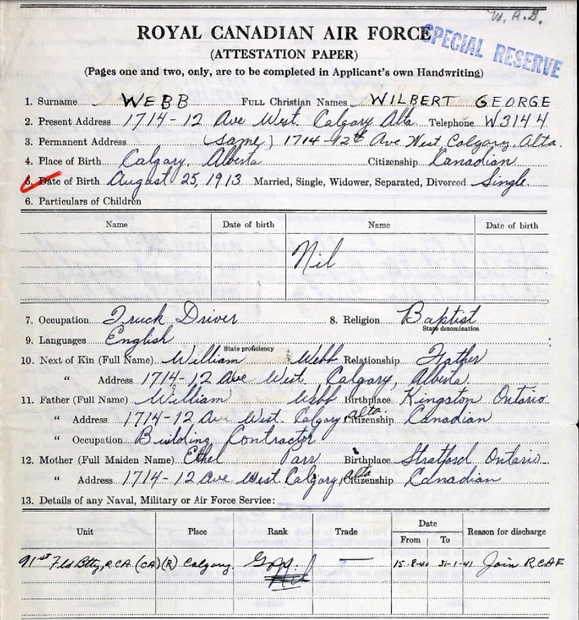 Digital gallery of Flight Sergeant Wilbert George Webb
