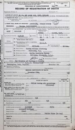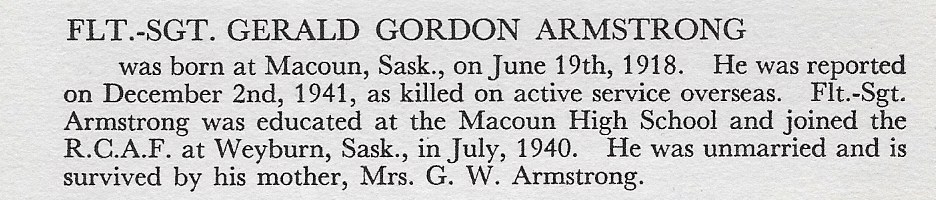 Son of Gordon William and Martha Henrietta Armstrong, of Macoun, Saskatchewan.
