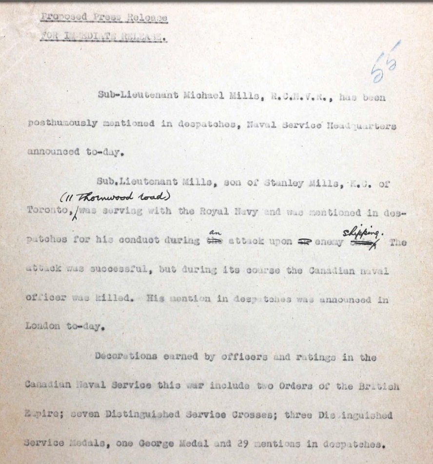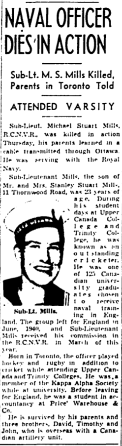 Son of Stanley Stuart Mills and Madeline Grace Mills, of Toronto, Ontario.