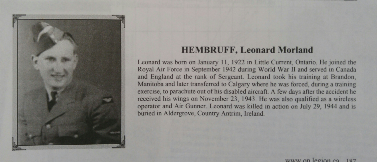 Son of Harold and Olga Hembruff, of Little Current, Ontario, Canada.