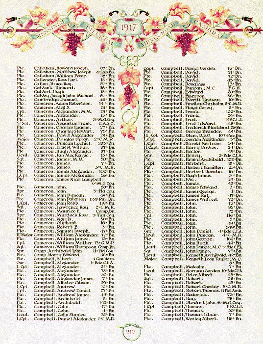 Page 212 of the First World War Book of Remembrance.