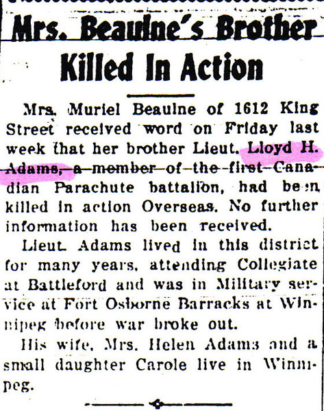 Digital gallery of Lieutenant Lloyd Herman Adams