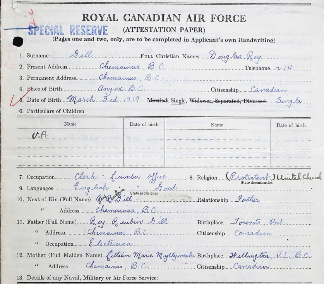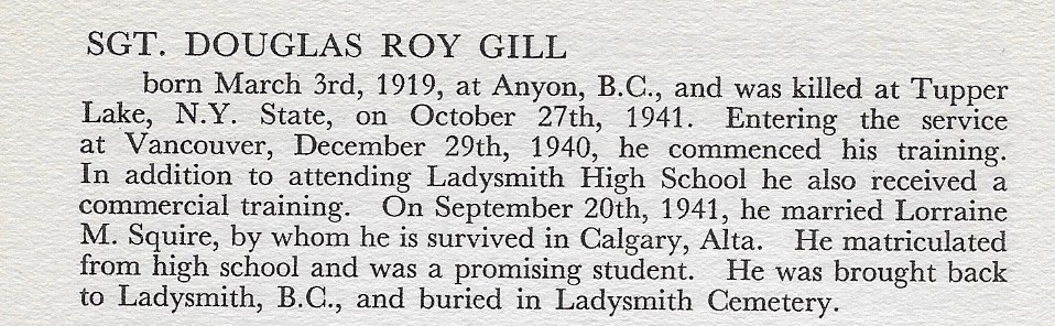 Son of Roy Reubin and Lillian Marie Gill, of Ladysmith, British Columbia. Husband of Lorraine M. Gill, of Nanaimo, British Columbia.