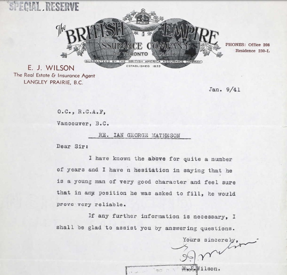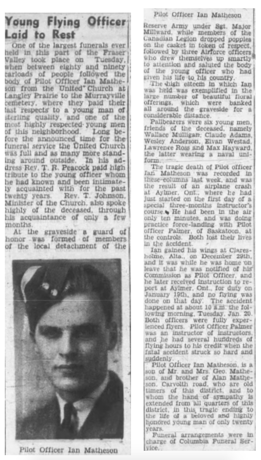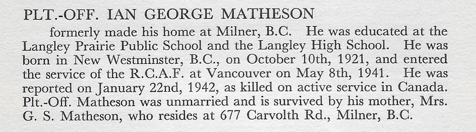 Son of George Stewart Matheson and Caroline Matheson, of Milner, British Columbia.