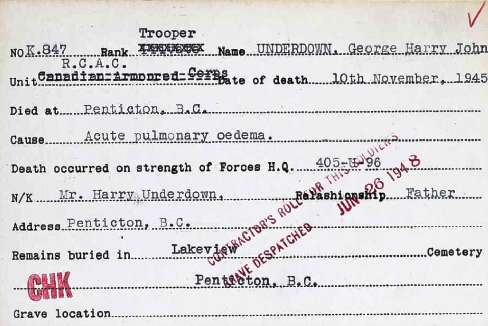 Brother of Private Gerald Percy Underdown, who died during service with the 48th Highlanders of Canada.