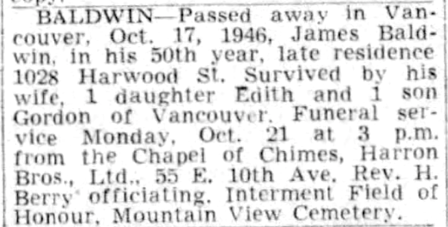 Husband of May Baldwin, of Vancouver, British Columbia.
