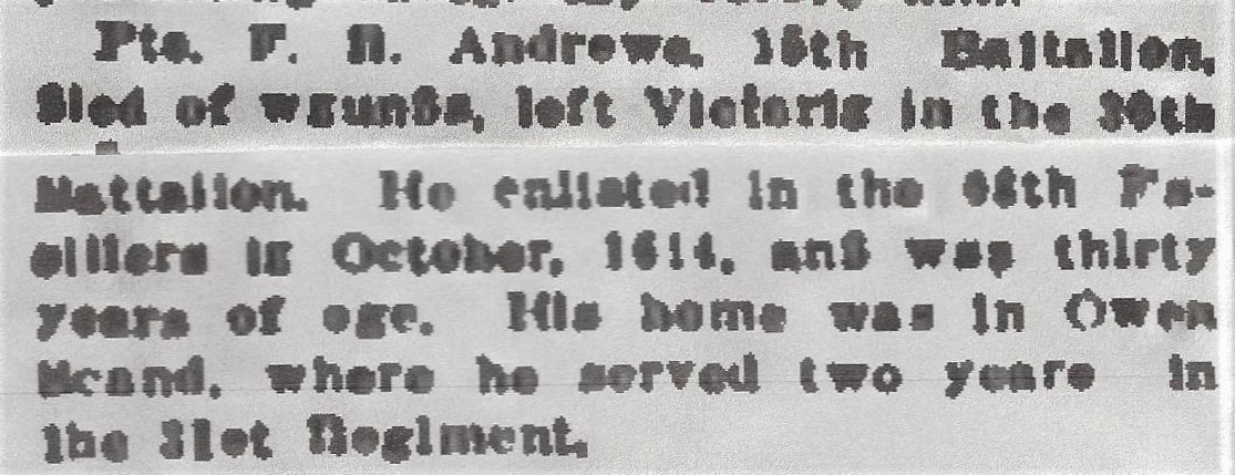 Son of Captain James Andrews of Owen Sound, Ontario. Brother of D. H. Andrews, of Salt Lake City, Utah, United States of America.