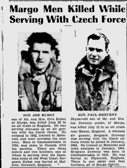 Son of Otto and Anna Kubat of Margo, Saskatchewan. The family came to Saskatchewan from their homeland of Czechoslovakia in 1937. In 1941, Josef enlisted in the Czech Air Force and Royal Air Force and left home at 18 years of age. He trained in England and the Bahamas as a co-pilot.