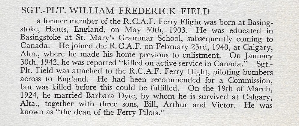 Son of Frederick and Ada Field, of Basingstoke Hampshire, England. Husband of Barbara Field, of Calgary, Alberta.