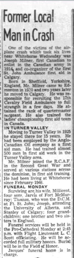 Son of Jarvis Roughton Milner and Charlotte Milner; husband of Millicent Florence Milner, of Edmonton.