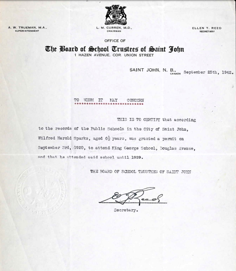 Son of William James Sparks and Georgie Sparks, of Saint John, New Brunswick.