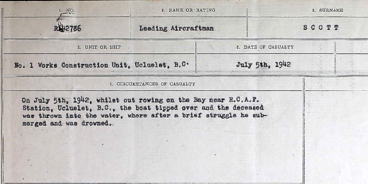 Son of Sidney J. O. Scott and Annie D. Scott, of North Vancouver, British Columbia.