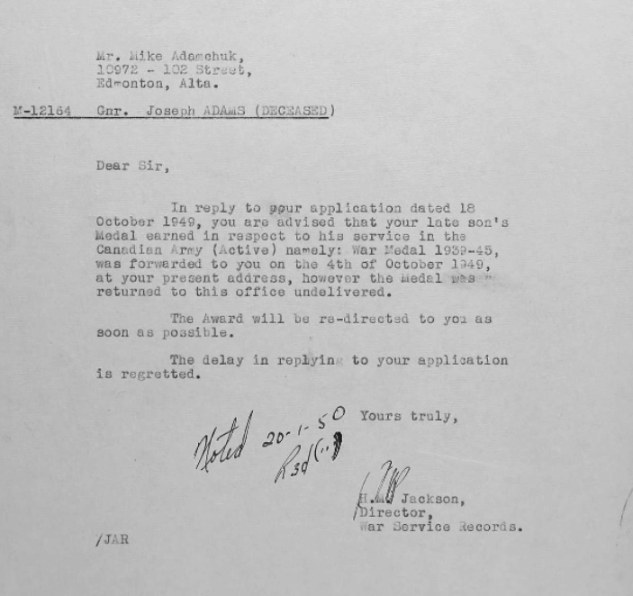 Son of Mike and Nellie Adams, of Edmonton, Alberta.