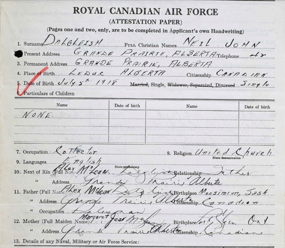 Son of Alexander and Jean Dalgleish, of Grande Prairie, Alberta.