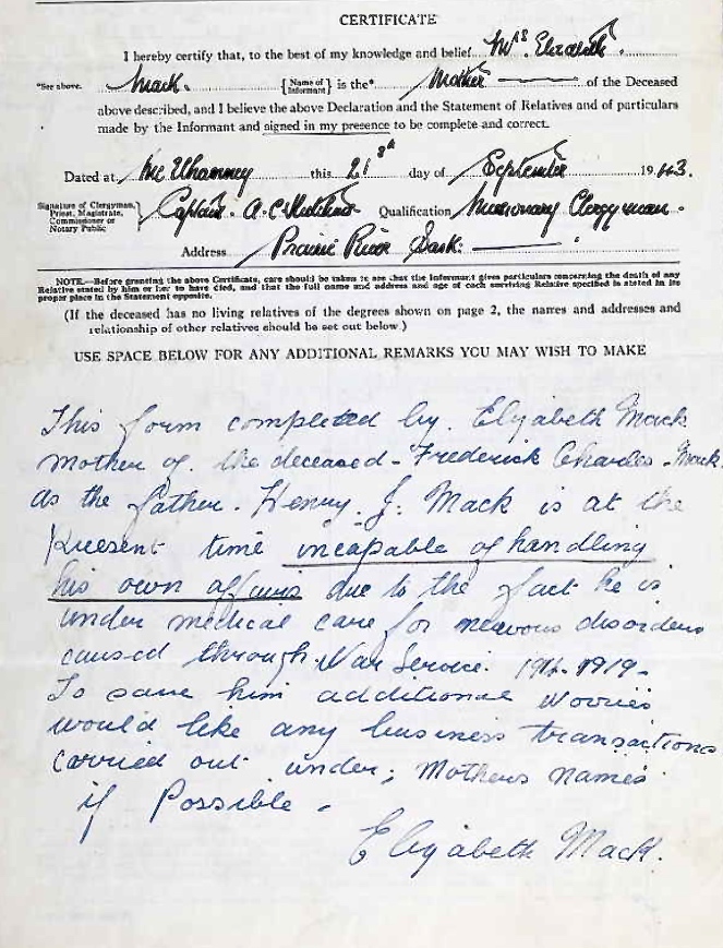 Son of Henry John and Elizabeth Mack, of McElhanney.
