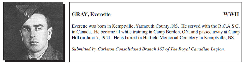 Son of Reginald and Lottie Gray, of Kemptville, Nova Scotia.