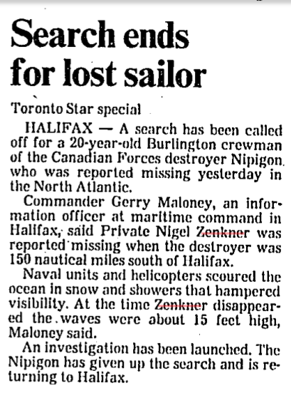 Ordinary Seaman Nigel David Zenkner
