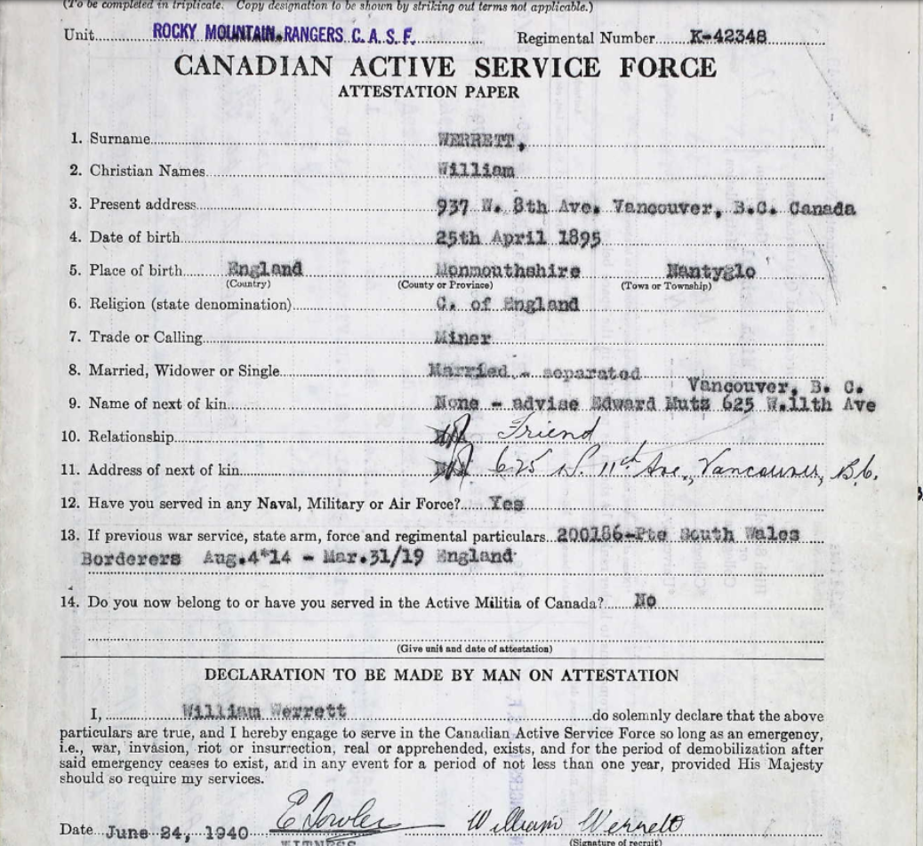 Husband of Blodwen Werrett, of Milford Haven, Pembrokeshire, Wales.