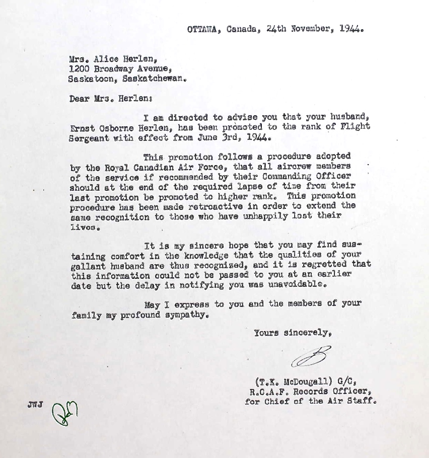 Digital gallery of Pilot Officer Ernest Osborne Herlen