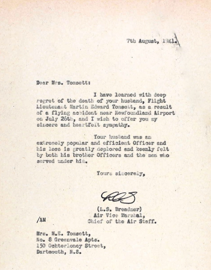 Son of Gerald Elgar Tomsett and Mary Tomsett, of Regina, Saskatchewan; husband of Bernice M. Tomsett, of Winnipeg, Manitoba.