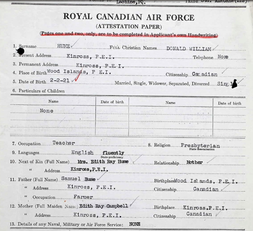 Birth: February 2, 1921 Wood Islands, Prince Edward Island