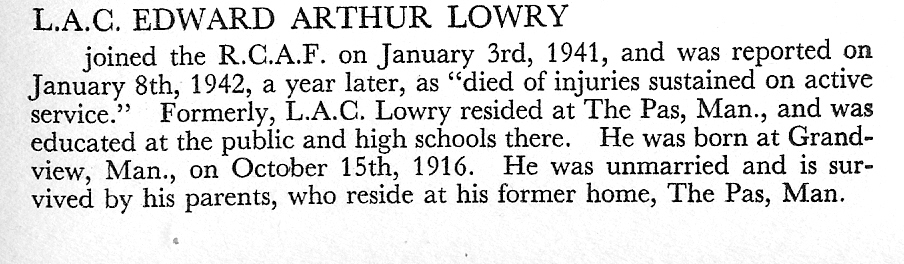 Son of William Harper Lowry and Marguerite Helen Lowry, of The Pas, Manitoba.