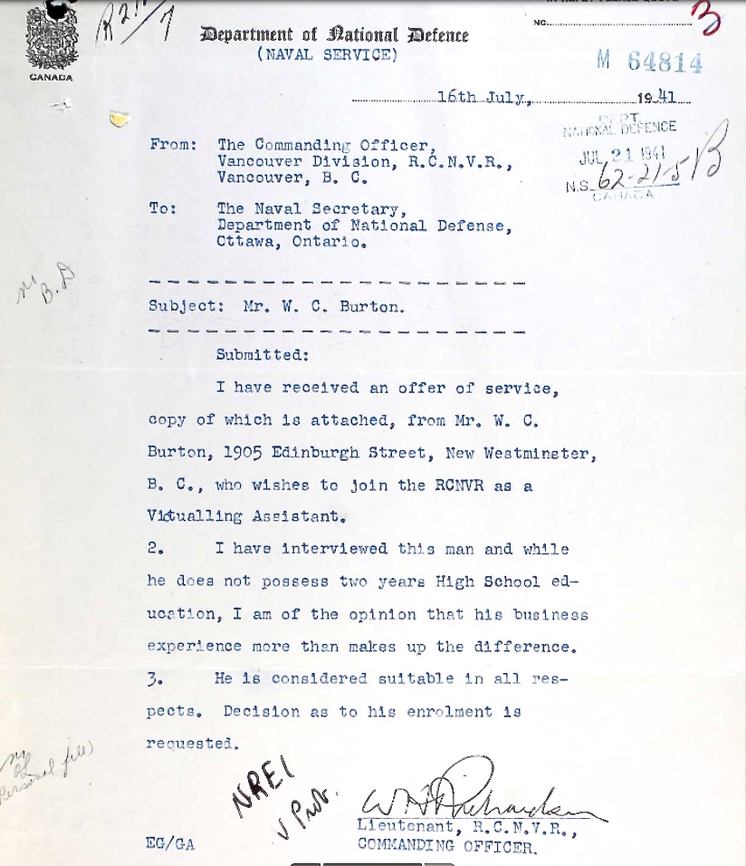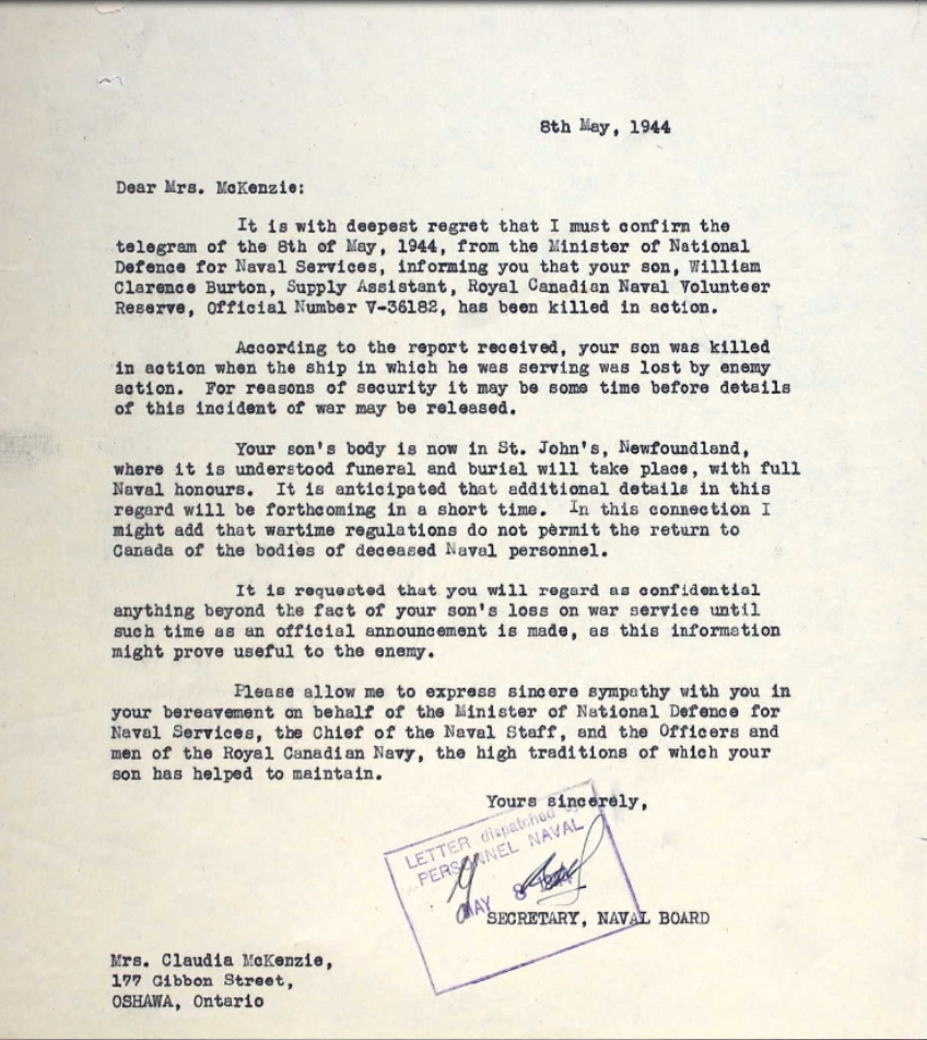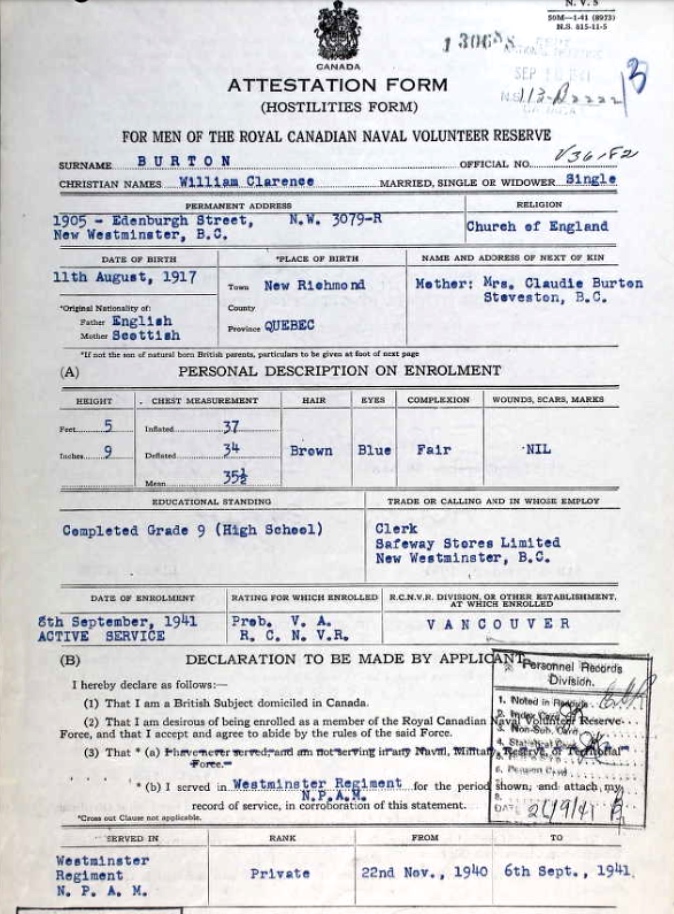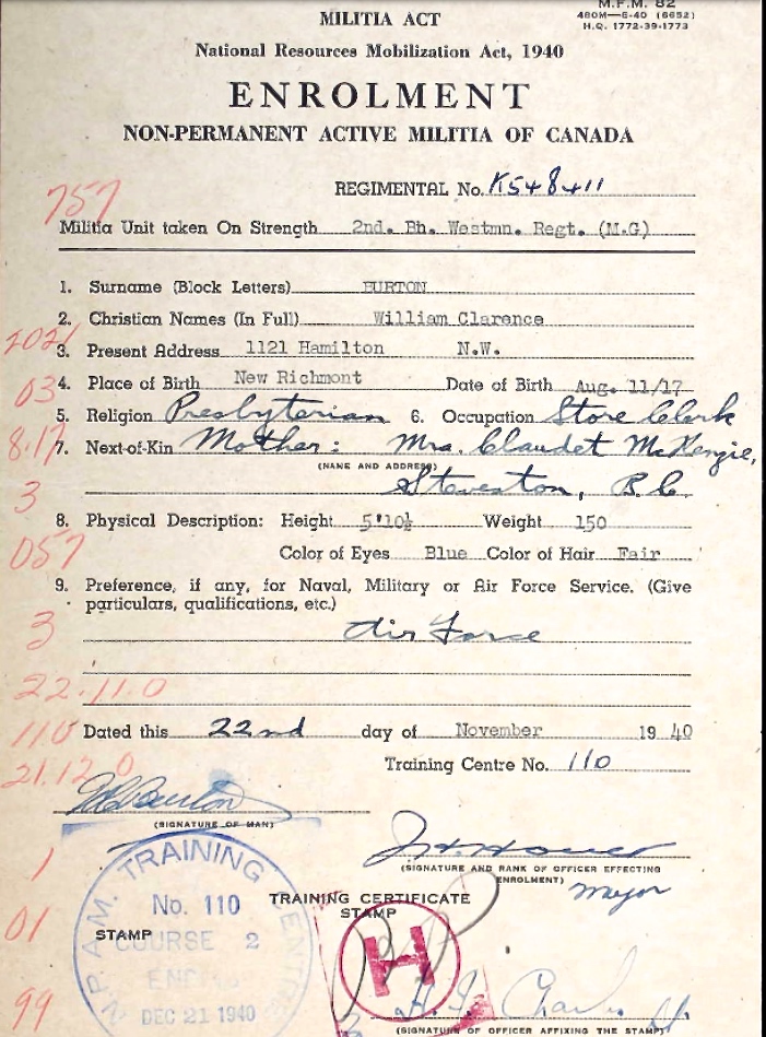 Son of William Clarence and Claudia Burton, of Oshawa, Ontario.