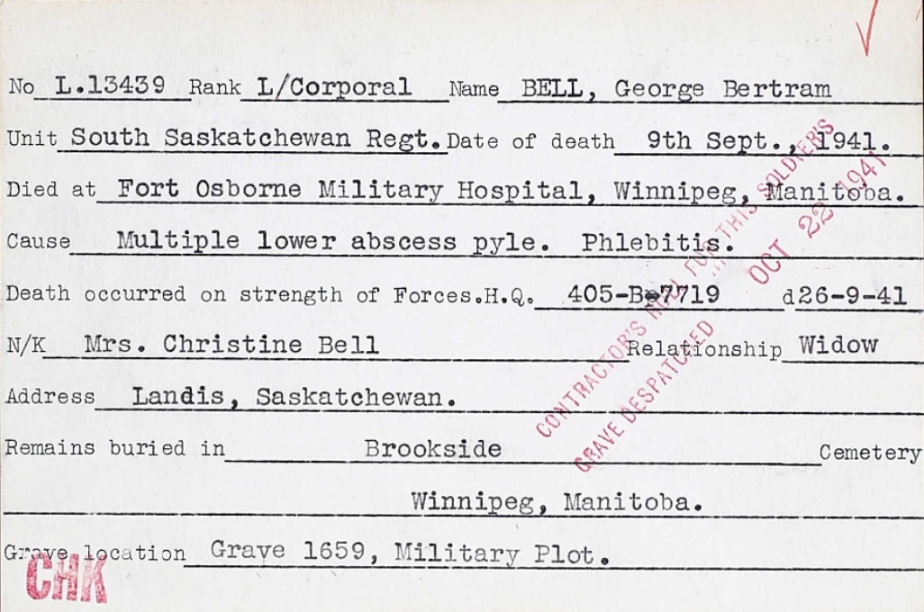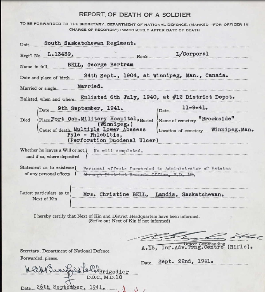 During the First World War, Winnipeg was the headquarters of No 10 Military District and it contained six military hospitals of 972 beds. Air force and army training camps were established in the area during the Second World War, with No 103 Canadian Army Basic Training Centre at Fort Garry. Winnipeg (Brookside) Cemetery contains 299 Commonwealth burials of the First World War and 149 from the Second World War, most of them in the special military plot.