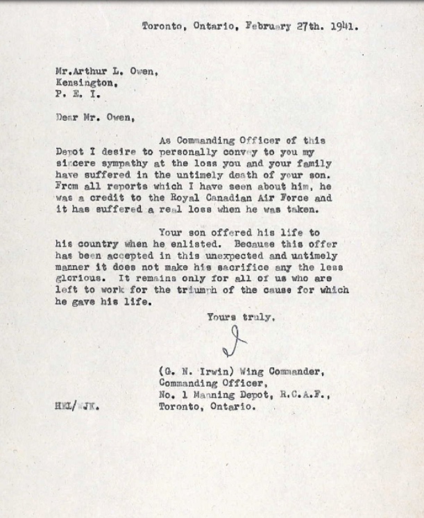Son of Arthur L. and Annie Isabelle Owen, of Kensington, Prince Edward Island.