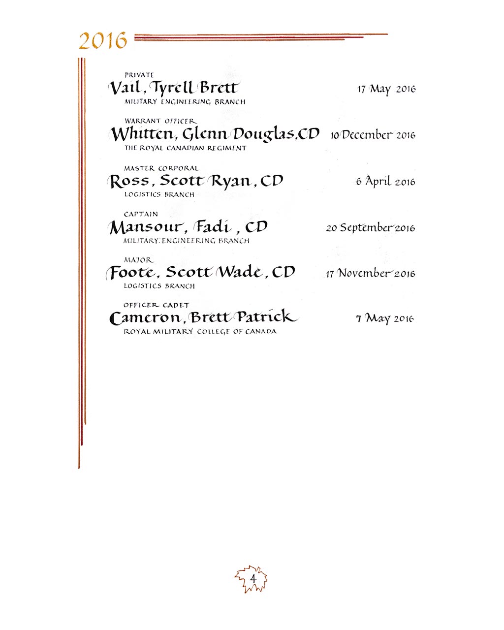 Page 4 of the In the Service of Canada, Vol. II (2015 – ) Book of Remembrance.
