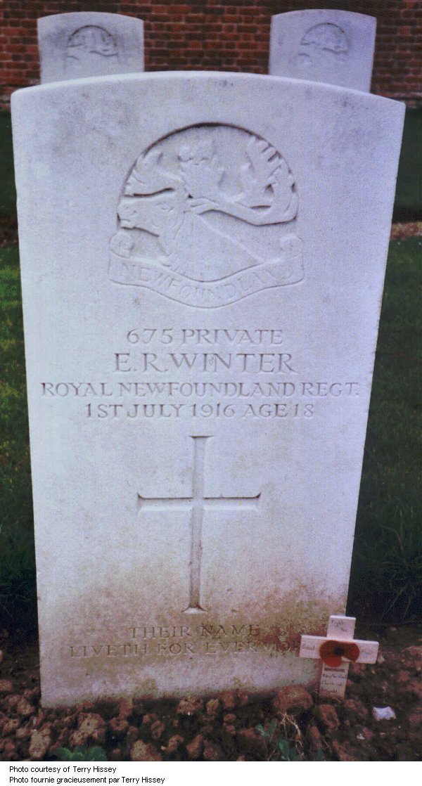 Son of Thomas and Florence Winter, of St. John's, Newfoundland. Served at Gallipoli and in Egypt.