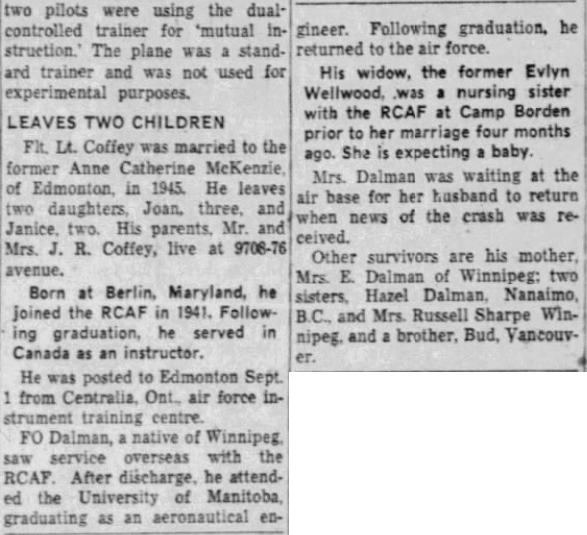 Son of John Richard and Myrtle Fern (nee Barbour) Coffey of Edmonton, Alberta. Husband of Anne Kathleen (nee McKenzie) and father of Kathleen and Janice of Edmonton, Alberta. Brother of Hornce, Ida, Barbara and Gladys.