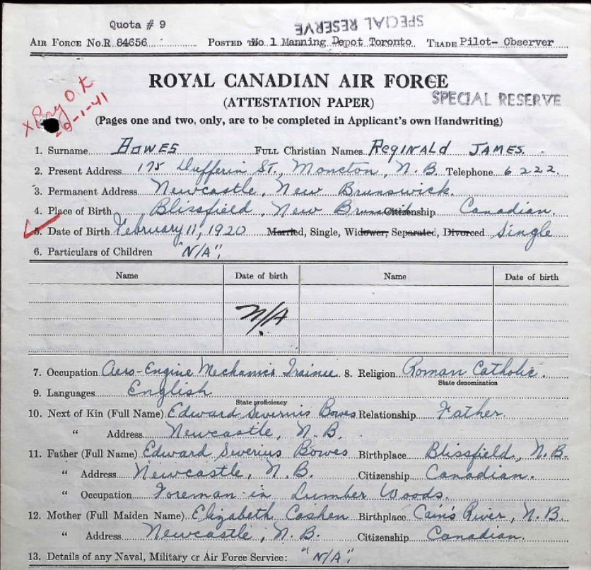 Digital gallery of Flight Sergeant Reginald James Bowes