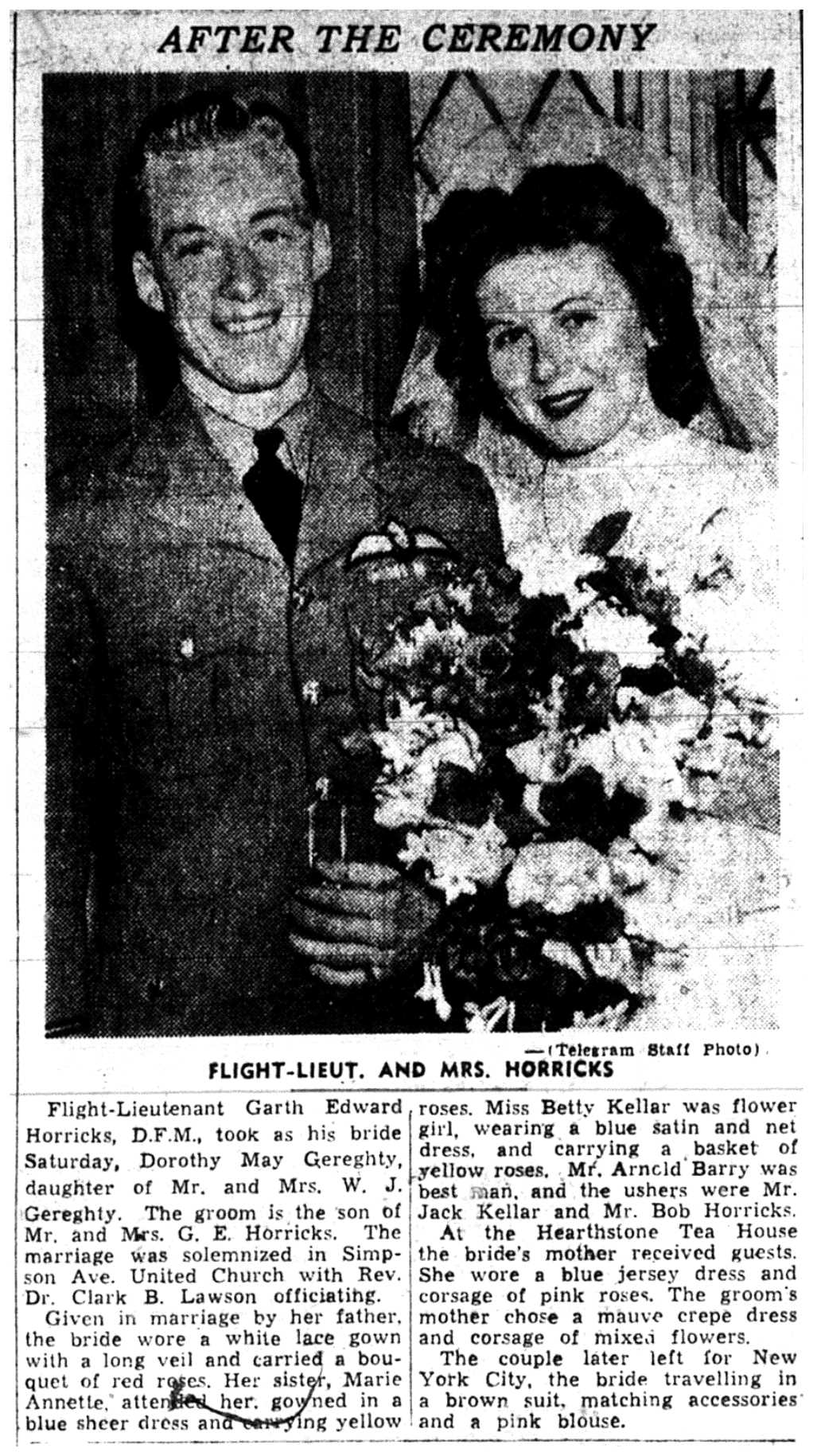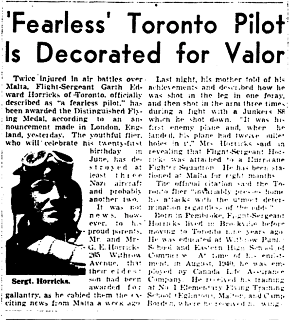 Son of George and Mabel Horricks of Toronto, Ontario. Husband of Dorothy Horricks. Brother of John and Douglas Horricks.