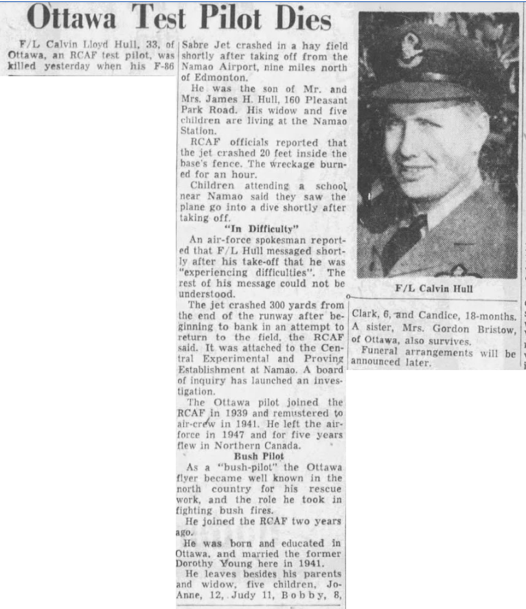 Son of James H. and Catherine M. Hull of Ottawa, Ontario. Husband of Dorothy Elizabeth (nee Young) Hull and father of Joanne, Judy, Robert, Clark, and Candace Hull of Ottawa, Ontario.