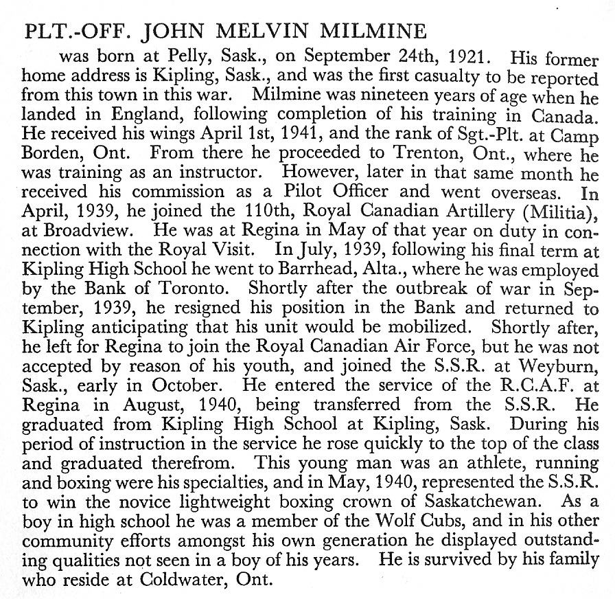 Digital gallery of Pilot Officer John Melvin Milmine