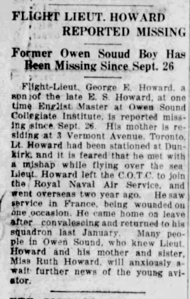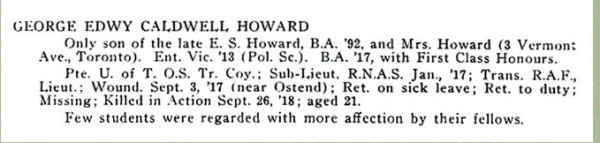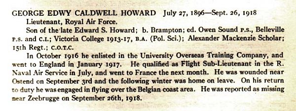 Son of Edwy S. Howard and Lelia R. Howard, of Toronto, Ontario Lieutenant Howard was a Graduate of the University of Toronto.