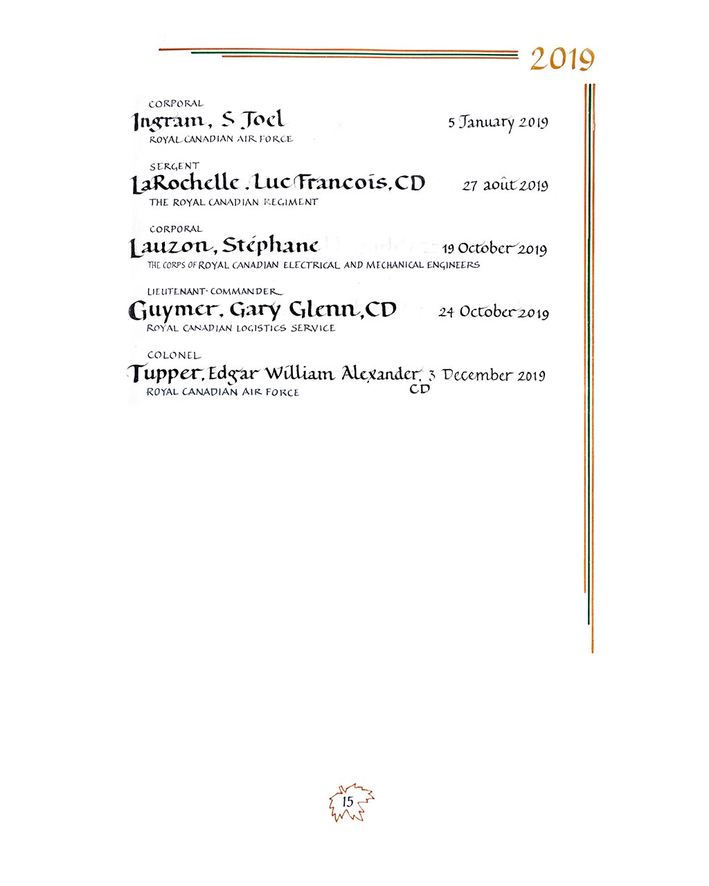 Page 15 of the In the Service of Canada, Vol. II (2015 – ) Book of Remembrance.