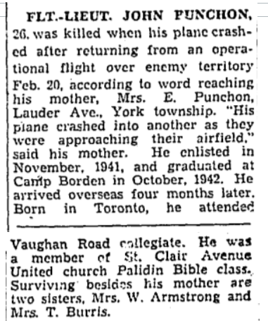 Son of Ralph and Eva Punshon, of Toronto, Ontario. Canada. Uncons.