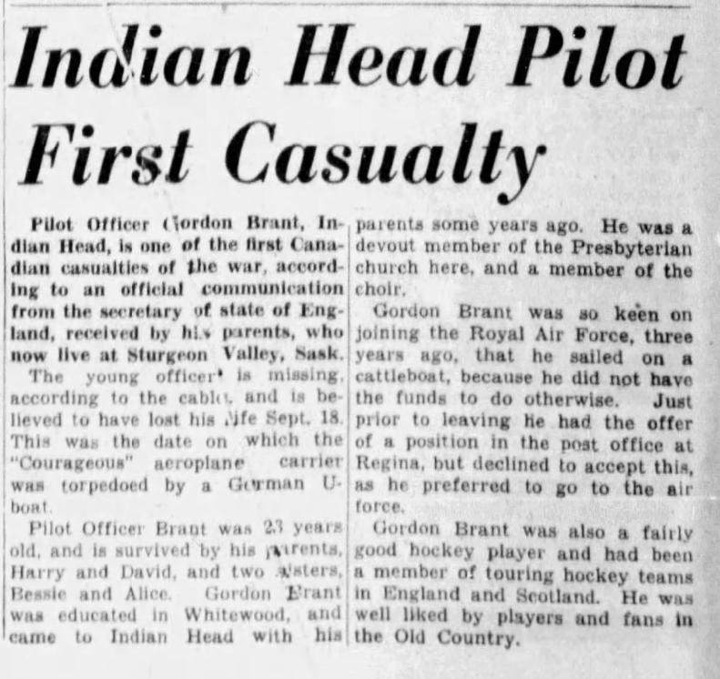 Son of The Revd. William John Brant and May Elizabeth Brant, of The Rectory, Meadow Lake, Saskatchewan, Canada.