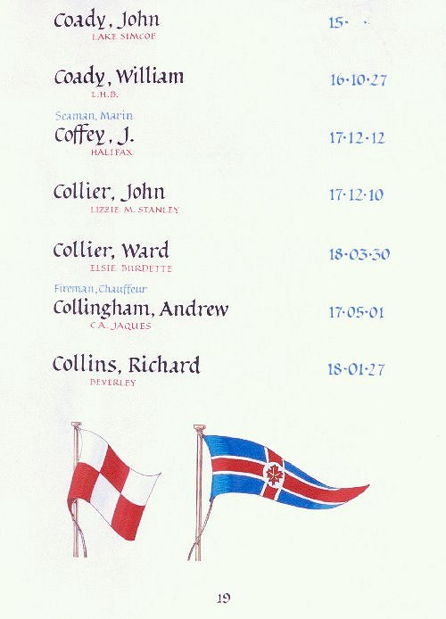 Page 19 of the Merchant Navy Book of Remembrance.