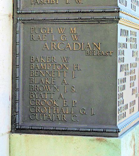 On April 15, 1917, the Arcadian, transformed into a troop transport, had just finished an exercise with 1,335 soldiers when it was torpedoed by UC-74 26 miles (42 km) north-east of the island of Milos, in the Cyclades archipelago, Greece. It sank in six minutes, position 36°50'N/24°50'W. In the whirlpool caused by the ship, 277 men lost their lives, including 34 crew members. The 1 0 58 survivors were rescued by the escort ships.